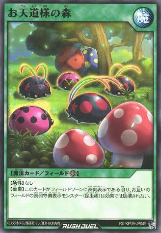 A fun little Insect Deck based around the idea of turning your opponent's monsters into Insects, then exterminating them. There's few high levels in order to get the maximum ammount of efficientcy in resolving cards like Princess Ladybug, Ancient barrier, Tumbling Insects, & Silkworm Fibellon. Forest of the Sun is primarally used along side Torrential Tribute, though it still has come up quite a lot by protecting my Insects from my opponent.