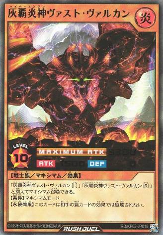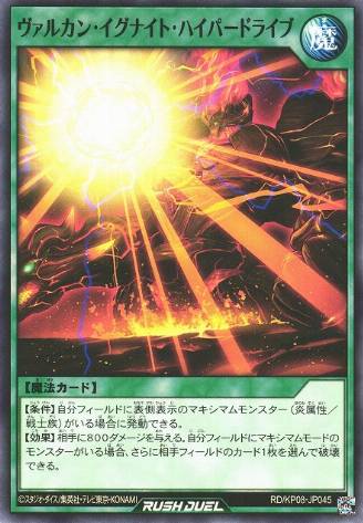 Previously, Vast Vulcan was regarded as the worst Maximum monster. While it's effects are still not that good, additional support and a shift in the metagame has changed it's viability drastically. Vulcan Ignite Hyperdrive not only is additional damage, it is also a removal spell for anything on the board provided we have Vast Vulcan out - which is our main gameplan, anyhow. This allows Vast Vulcan to deal with targets that are usually too big for most other Maximum Monsters, like Master of Sevens Road/Magician of Dark Sevens, which are usually a big hindrance for Maximum Decks, without relying on your opponent playing into cards like Judgment of the Rising Light.